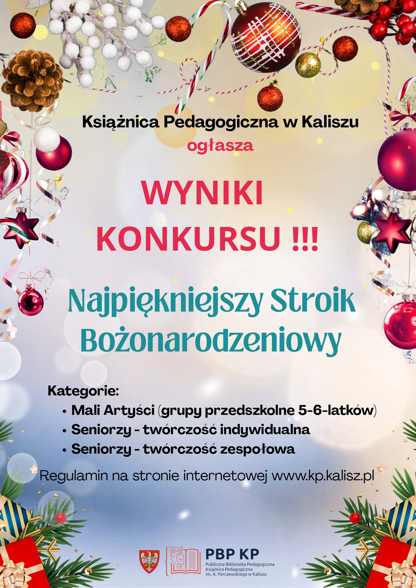 ogลaszamy wyniki konkursu, ktรณry wyrรณลผniล najpiฤkniejsze stroiki boลผonarodzeniowe wykonane przez grupy przedszkolne i seniorรณw z Kalisza oraz powiatรณw: jarociลskiego, kฤpiลskiego, krotoszyลskiego, ostrowskiego, ostrzeszowskiego, pleszewskiego! ![]()