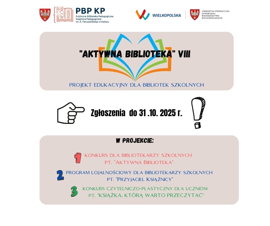 Konkurs dla bibliotekarzy szkolnych „Aktywna Biblioteka” – termin składania prac konkursowych: 30 kwietnia 2026 r.